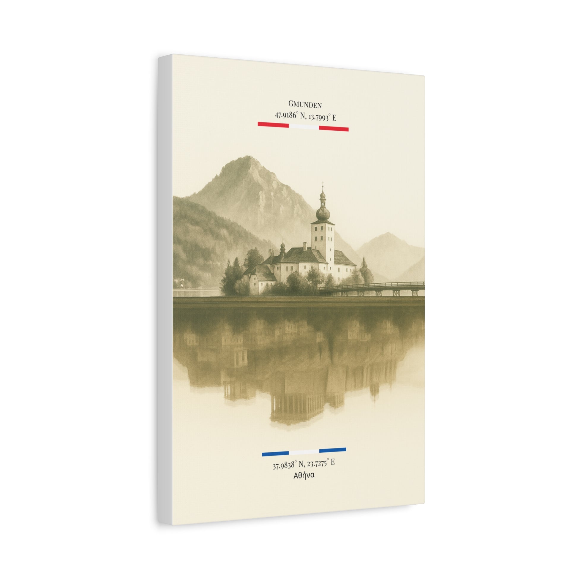 Vintage Sepia Gmunden Athens – Fine-Art Illustration | Heimatstadt Collection | Vertical Wall Art