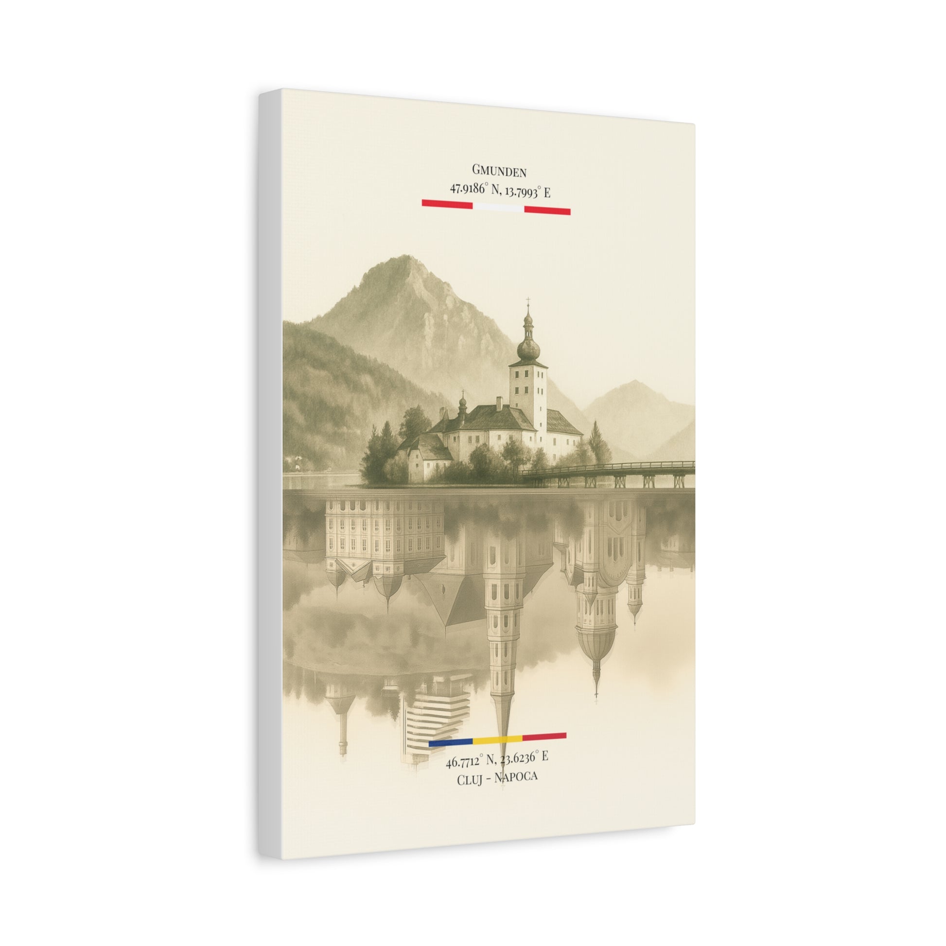 Vintage Sepia Gmunden Cluj – Fine-Art Illustration | Heimatstadt Collection | Vertical Wall Art